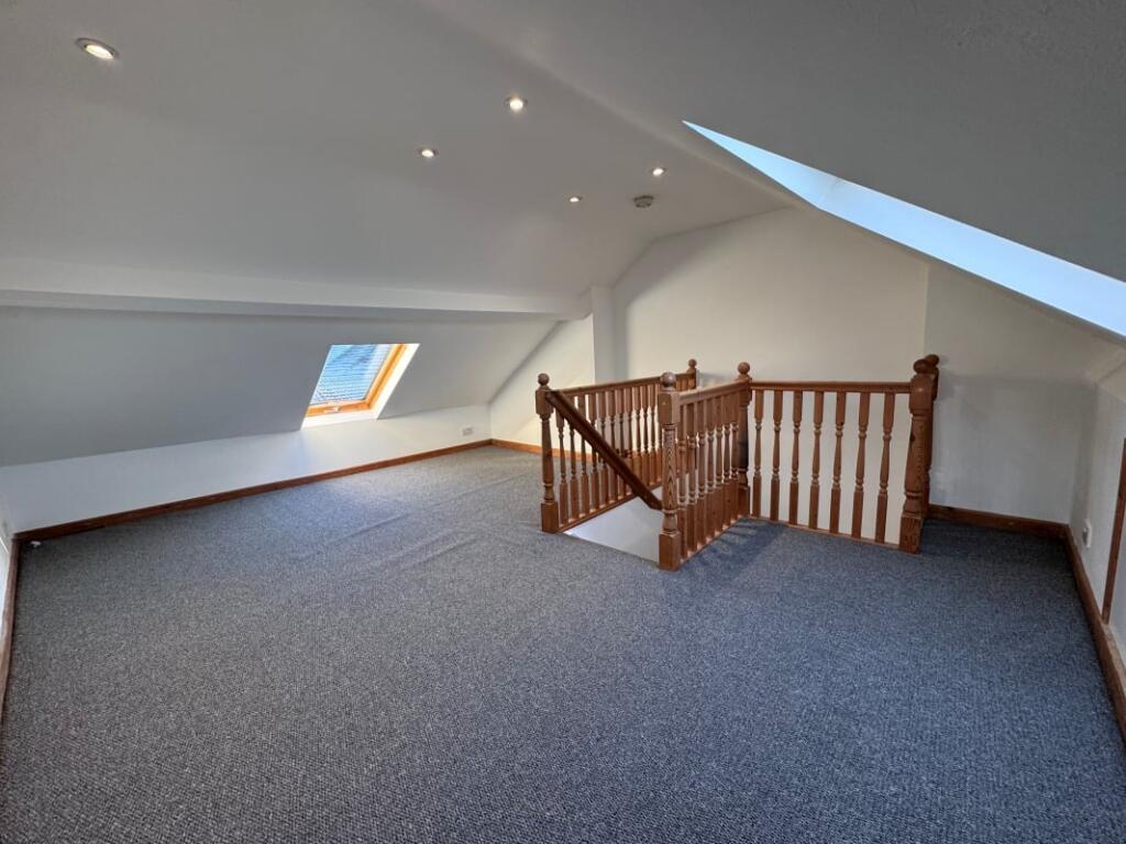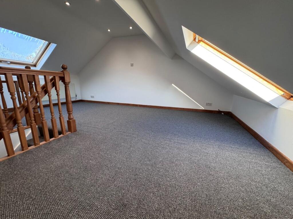 A staircase leading up to the top floor offers a spacious bedroom to the loft area, with Velux sky lights overlooking the front and rear of the property attracting a vast amount of light.