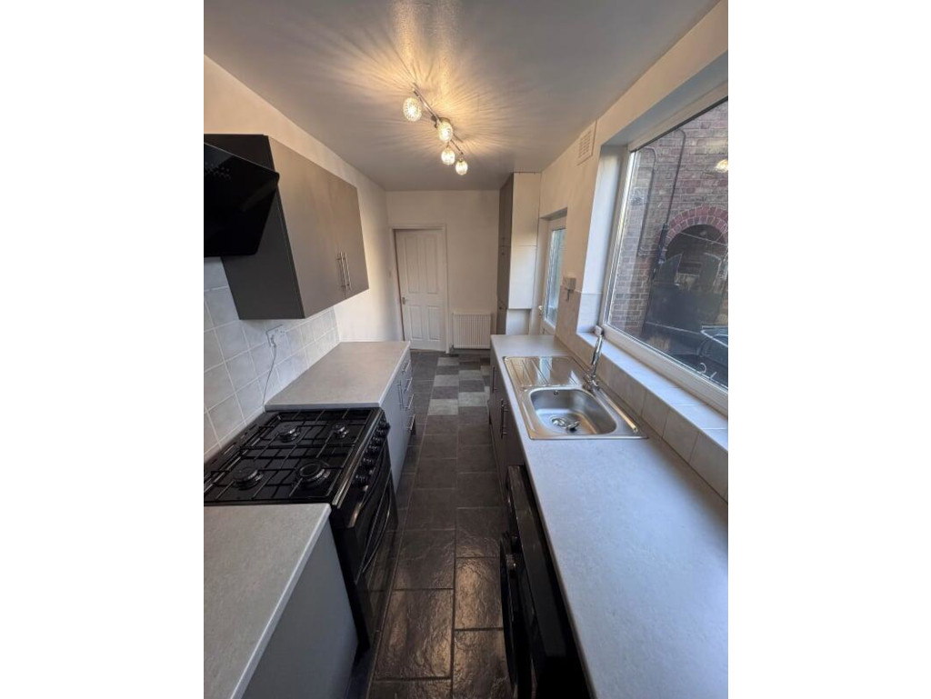 Upon entry to the property there is an entrance hallway with laminate flooring, leading into both reception rooms. To the rear of the property is a newly refurbished kitchen with a range of wall and base mounted units and freestanding cooker. Please be aware that the washing machine currently in situ is not included with the tenancy.
