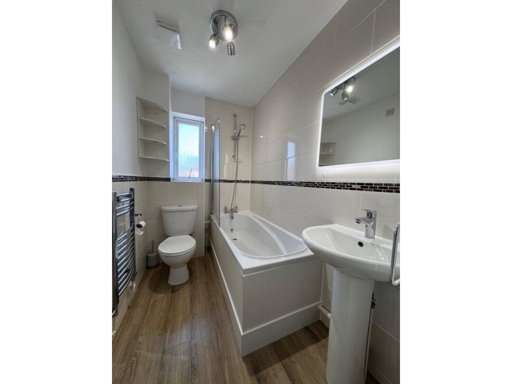 The property boasts two well-proportioned bedrooms, both benefiting from integral wardrobes complete with clothes rails and shelving. The bathroom has been refurbished to a high standard with wall a mounted LED mirror, complete with a white modern suite and newly fitted shower mixer over the bath.
