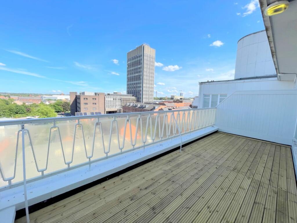Available for a single professional is this beautifully presented, STUDIO apartment located within the popular Exchange building on the fourth floor. The apartment comprises of an entrance hallway leading to a modern bathroom with shower over the bath and a white suite. A spacious open plan living room/ kitchen with oven, hob, extractor and integrated fridge freezer. The spacious living area offers large windows with access to a large wooden decked roof terrace. This apartment is available now.