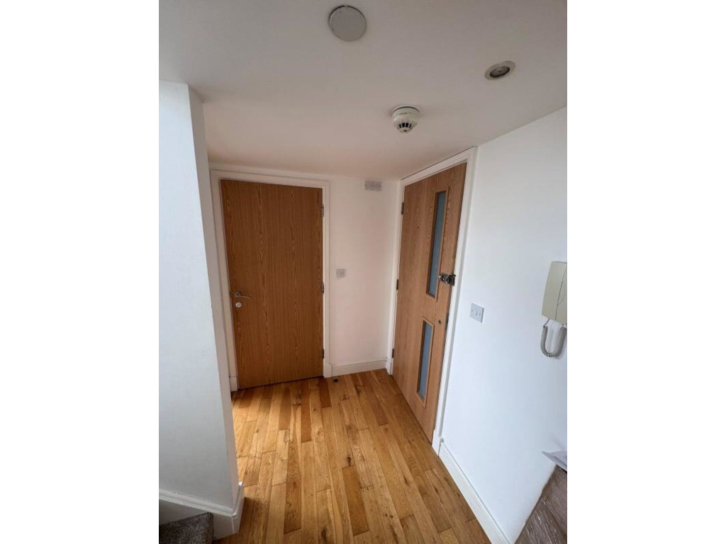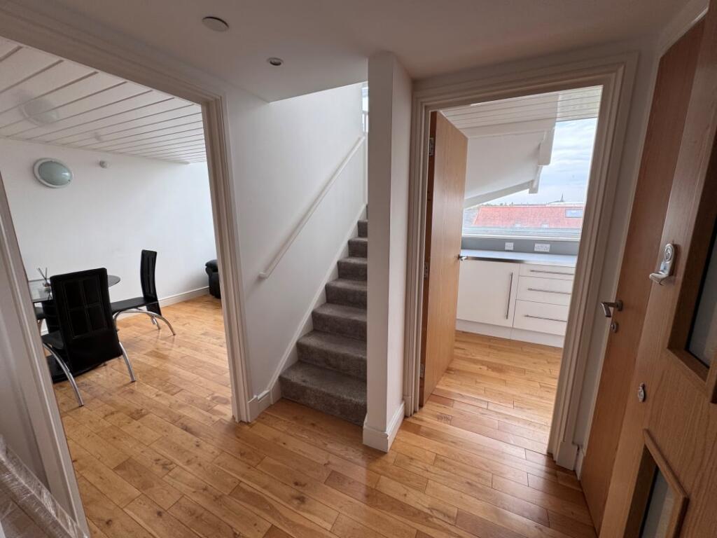 The apartment offers an entrance hallway with intercom camera system. Well presented bathroom with shower over the bath and the spacious living room is positioned to the rear of the building with large windows offering a vast amount of light. The kitchen comprises of oven, ceramic hob, extractor hood, washer dryer and integrated fridge freezer. To the first floor there are two double bedrooms with spacious integrated wardrobes. This is an open plan design apartment with many great features!