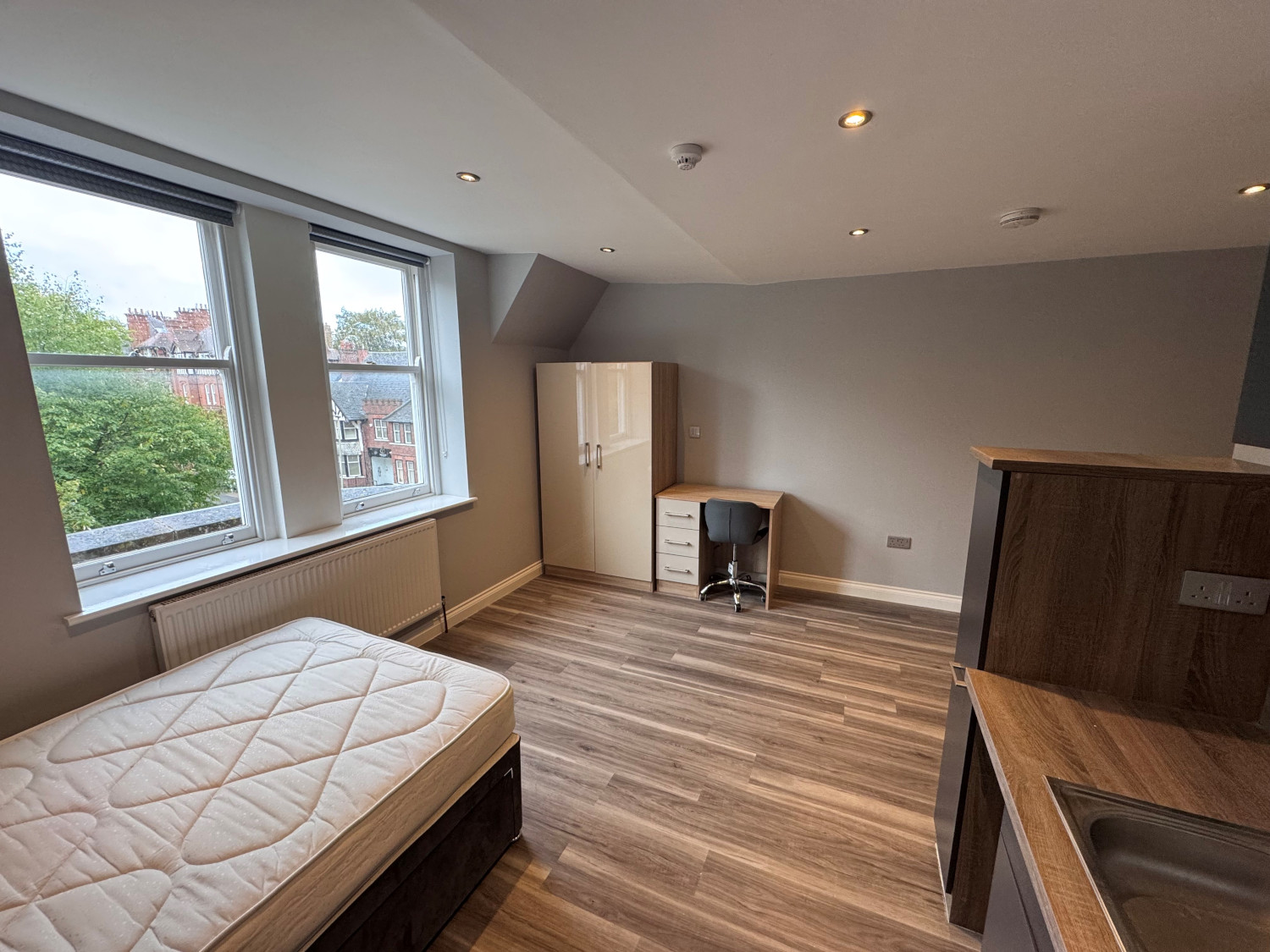 We are delighted to present this fantastic opportunity to rent a spacious second-floor studio flat on Upper New Walk in Leicester. This delightful flat is suitable for a single professional. The accommodation offers a large open plan kitchen/ living area which is furnished and includes kitchen appliances. A modern bathroom suite with shower enclosure and heated towel rail.